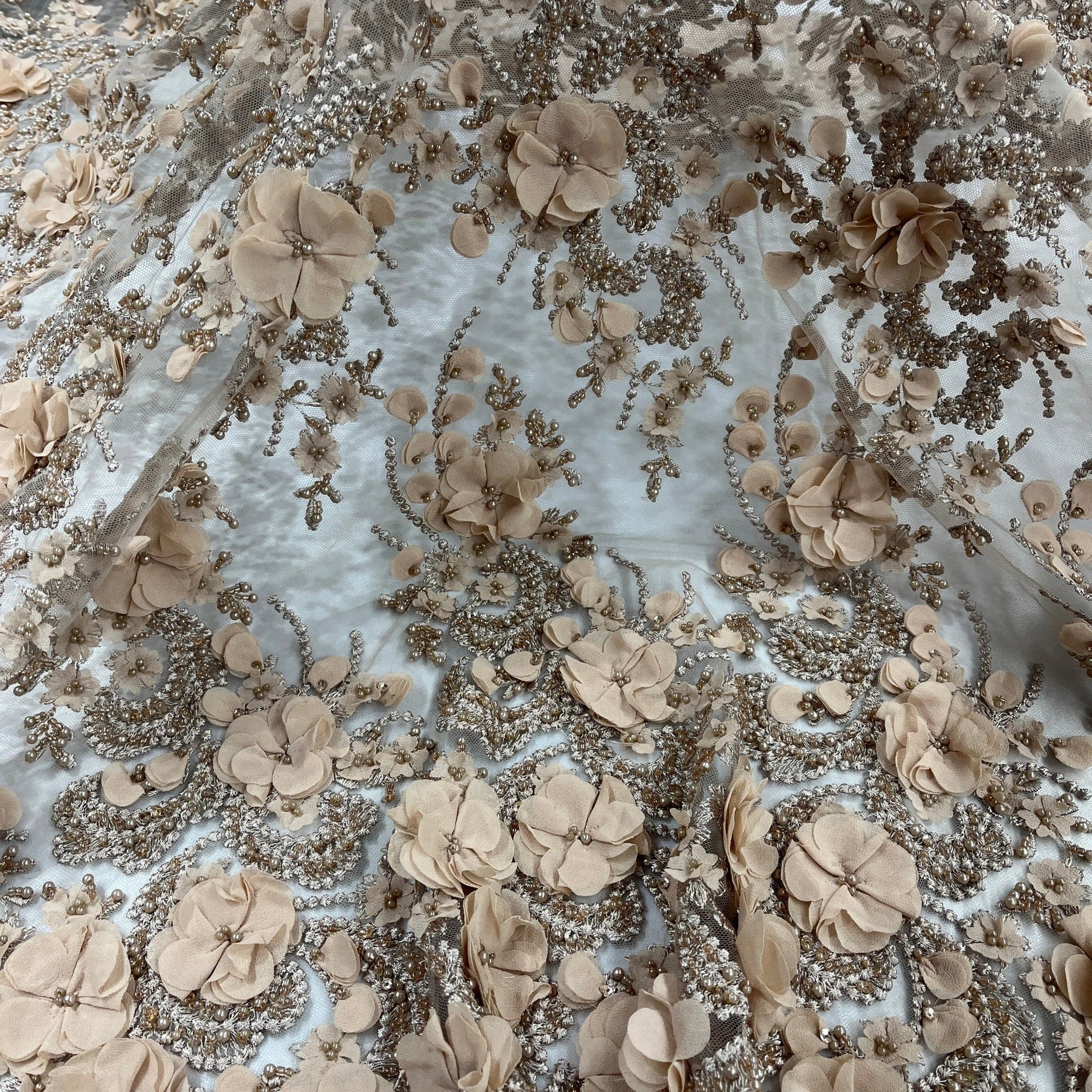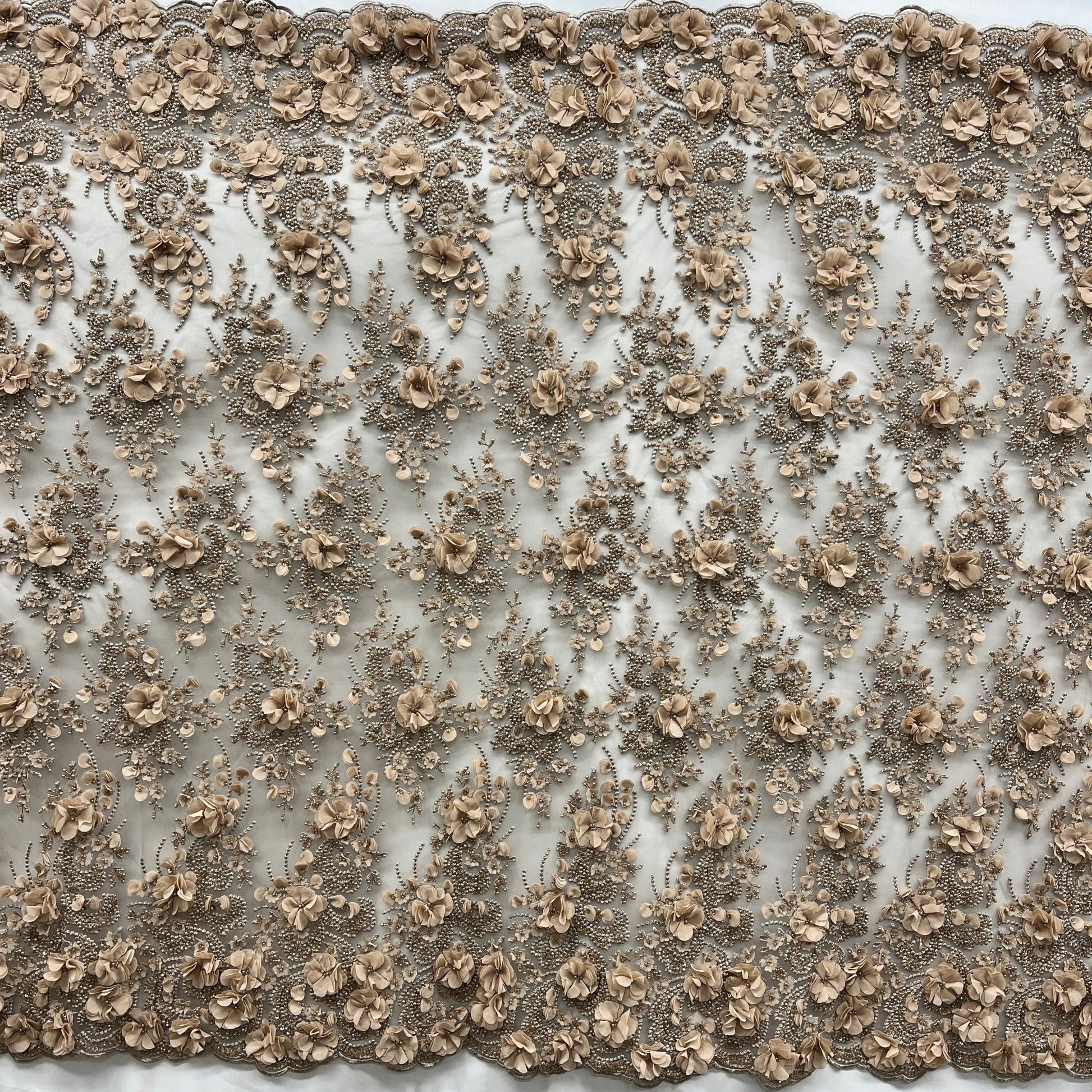 Beaded 3D Floral Lace Fabric Embroidered on 100% Polyester Net Mesh | Lace USA - GD-362