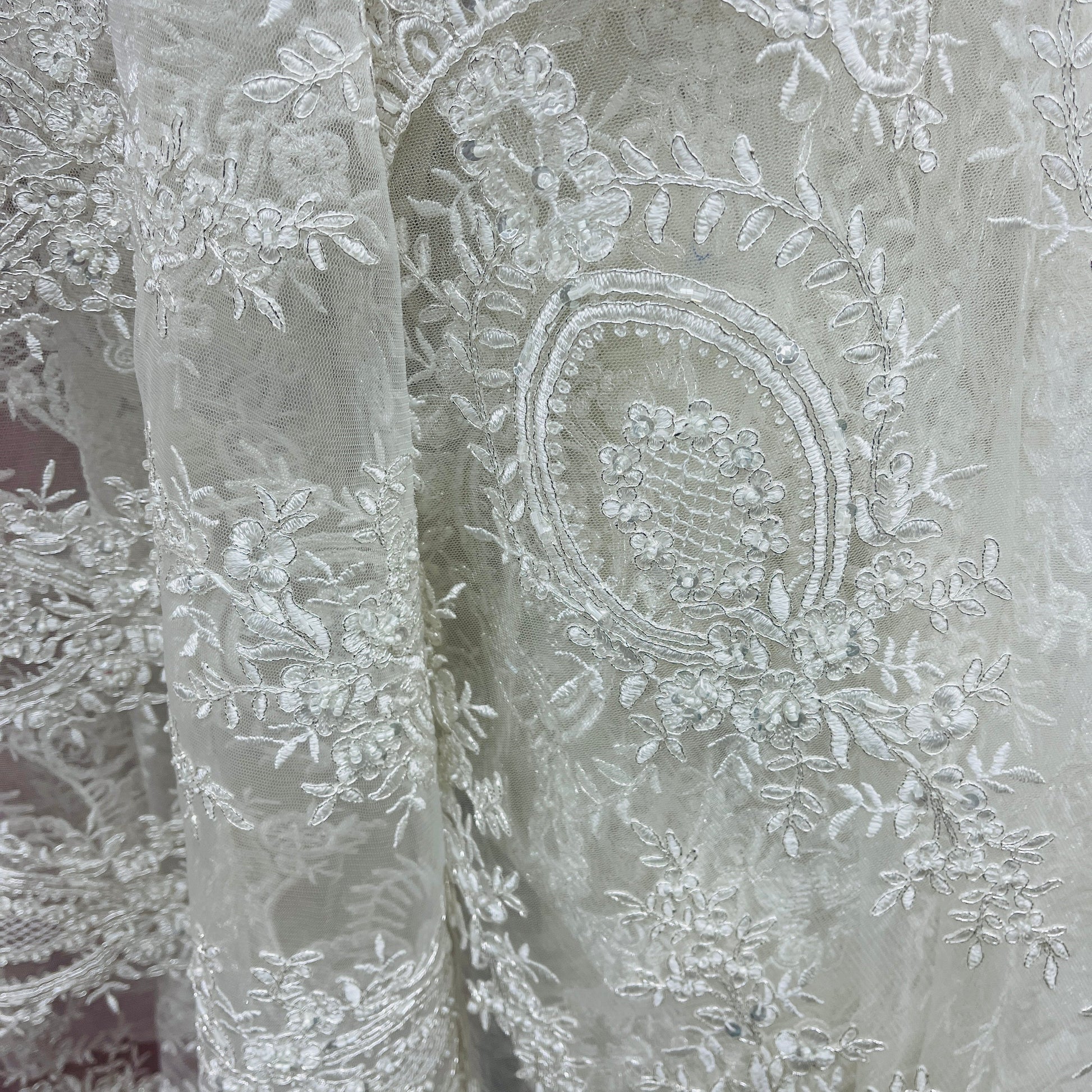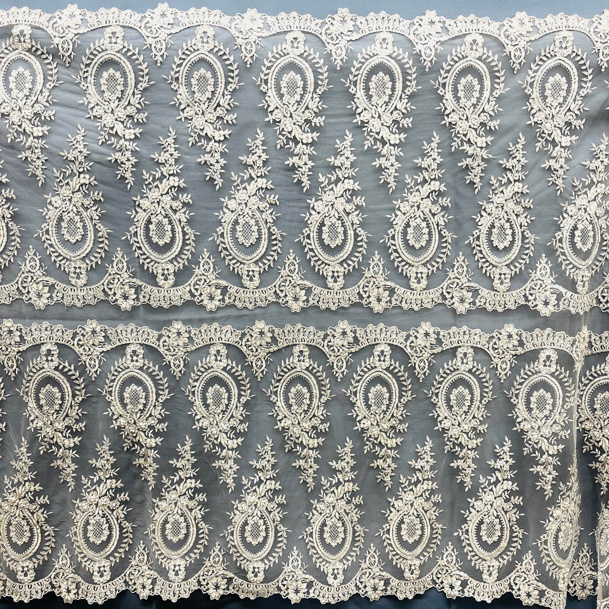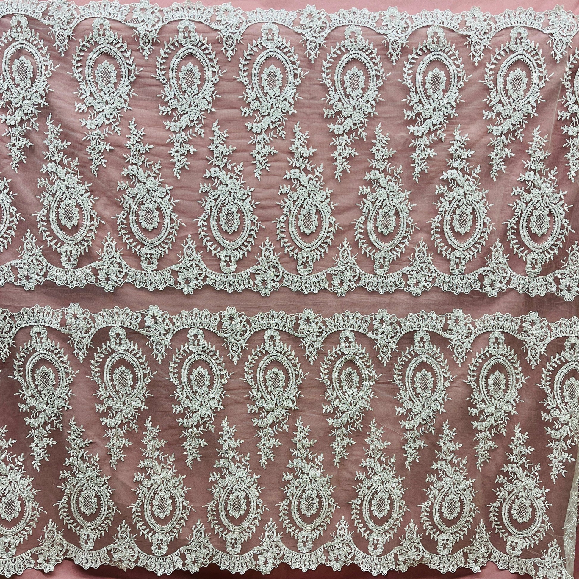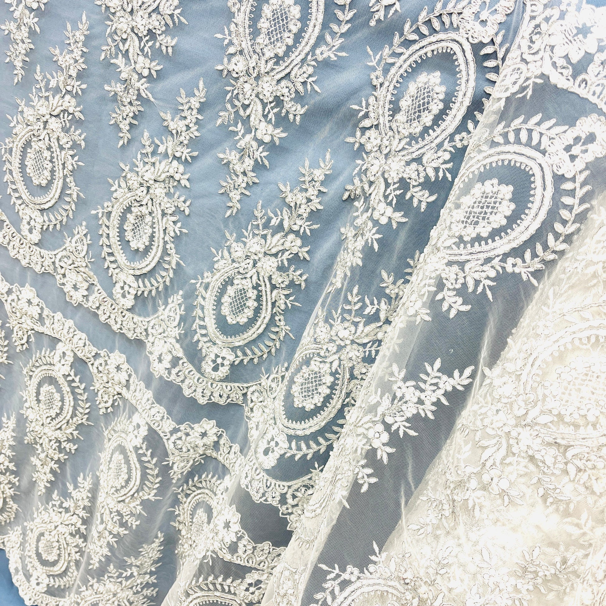 Our gorgeous Beaded & Corded Lace Fabric Embroidered on 100% Polyester Net Mesh will make you feel like a goddess on any special occasion. Whether you wear it for a wedding dress, evening gown, dance costume or a quinceanera dress, it will add a regal, luxurious touch. The embroidery with beaded & corded details will make your dress stand out and make you shine. Comes as 48" wide and in 3 colors, this soft, airy fabric will give a romantic look to your garment. We also offer two types of couture lace - Beaded Couture Lace and Corded Couture Lace - the perfect touch to show off your unique style at the proms and fancy parties. Create bridal lace, evening dress lace, quinceanera dress lace, dance costume lace with our amazing fabric. We also provide special occasion lace, embroidered lace with beaded & corded details, and elegant beaded & corded lace for your special day or evening looks. No matter which type you choose, our decorative corded & beaded lace will give your garment the perfect final touch! Make your dress stand out with our beautiful Beaded & Corded Lace Fabric Embroidered on 100% Polyester Net Mesh. Get this amazing fabric to create timeless creations, and be prepared to shine like a diamond!