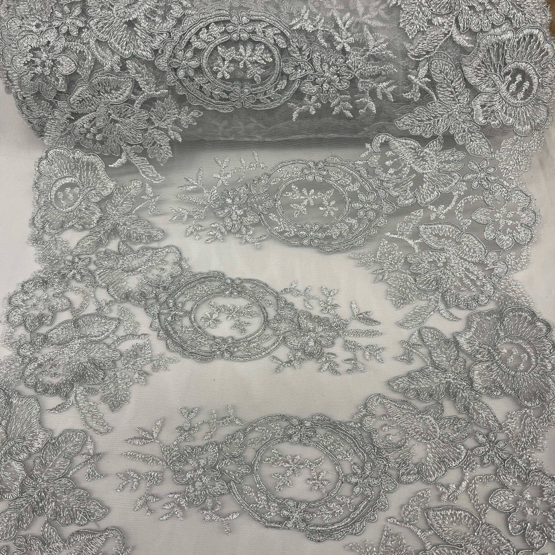 Corded Double Sided Lace Trimming Embroidered on 100% Polyester Net Mesh | Lace USA - 97039W/2